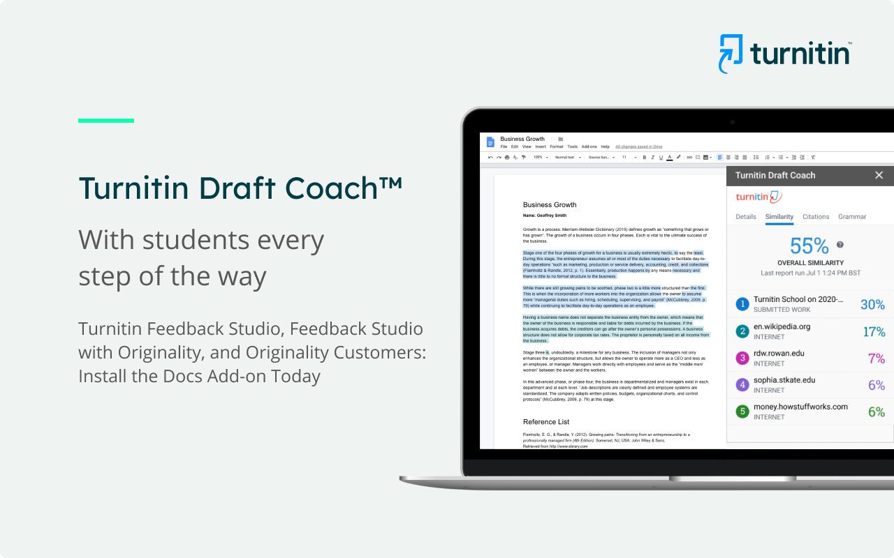 Ngoài việc kiểm tra đạo văn từ các nguồn trực tuyến, Turnitin còn có thể kiểm tra đạo văn từ các bài viết được xuất bản và các bài luận của học sinh, sinh viên trên toàn thế giới, đảm bảo bài viết của bạn là độc lập và không sao chép từ nguồn khác.