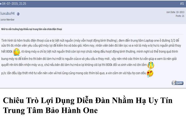 Đăng lên diễn đàn khiến người dùng nhầm tưởng Bảo Hành One lừa đảo
