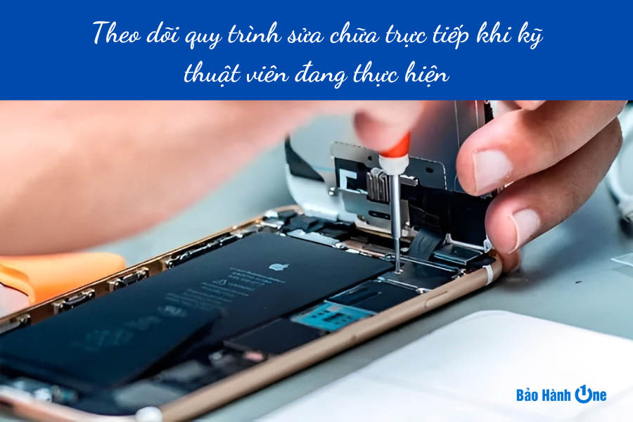 Theo dõi quy trình sửa chữa trực tiếp khi kỹ thuật viên đang thực hiện, hoặc theo dõi trực tiếp qua hệ thống camera an ninh của trung tâm/cửa hàng.