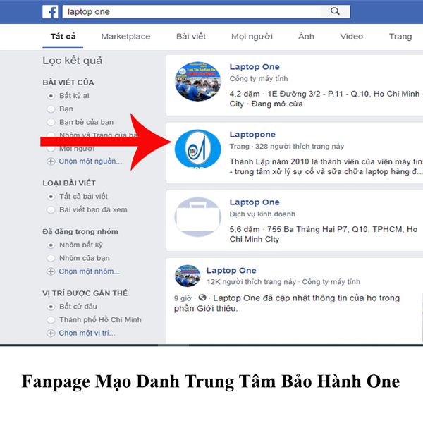 Fanpage giả mạo Trung Tâm Bảo Hành One