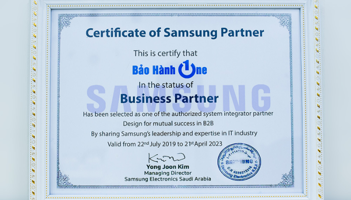 Bảo Hành One nhận chứng nhận Business Partner từ Samsung