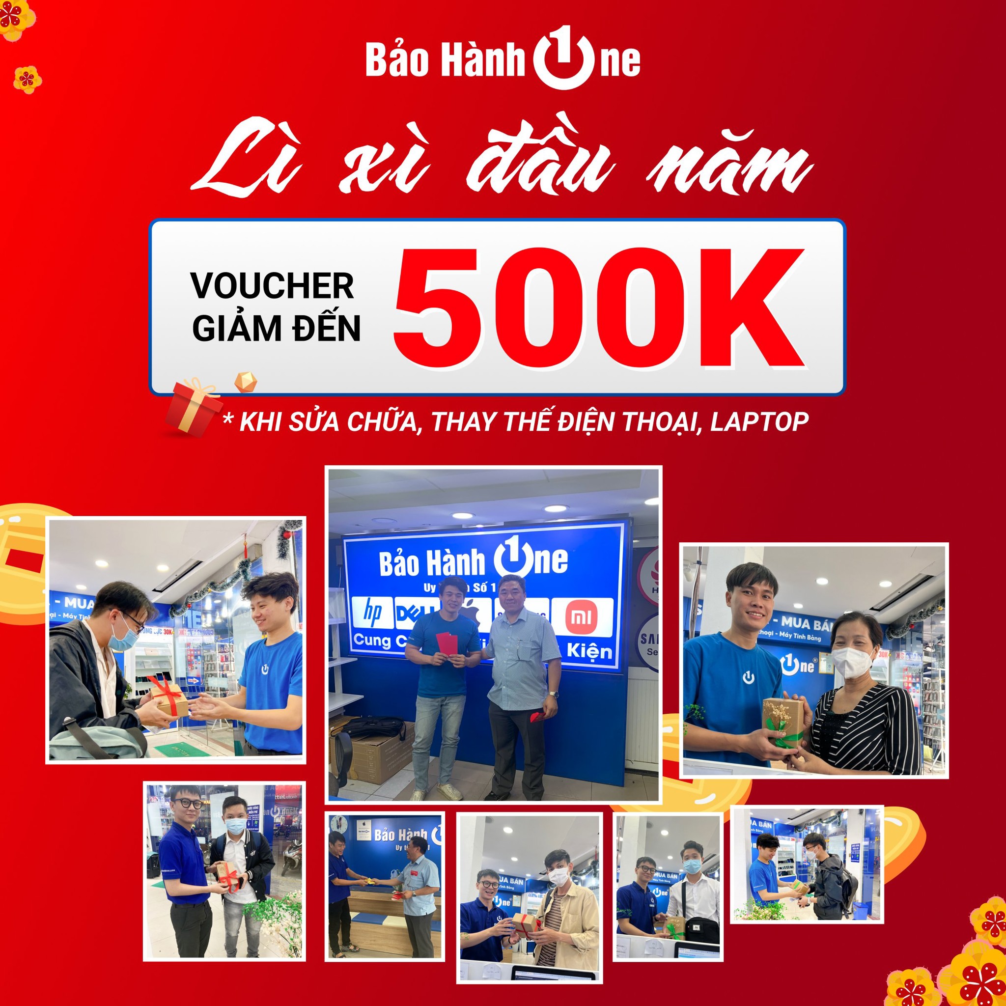 Nhân dịp ngày đầu xuân 2023 đánh dấu 16 năm Quý Khách Hàng đồng hành cùng Bảo Hành One, chúng tôi triển khai chương trình “Nhận lì xì voucher đến 500k" cực khủng khi Quý Khách sử dụng dịch vụ sửa Điện thoại, sửa Laptop, sửa Tablet, sửa Macbook và các dịch vụ khách từ ngày 27/01/2023 đến hết ngày 31/01/2023.
