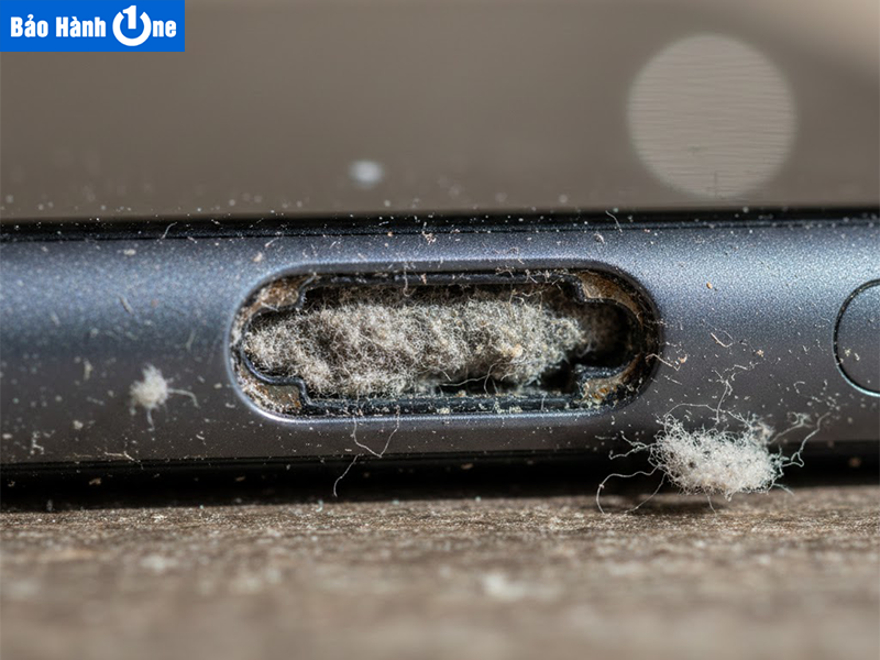 - Tích tụ di vật: Bụi mịn và xơ vải từ túi quần, túi xách. Lâu ngày tạo nên một lớp cách điện ngăn cản sự tiếp xúc giữa chân sạc và đầu cáp.