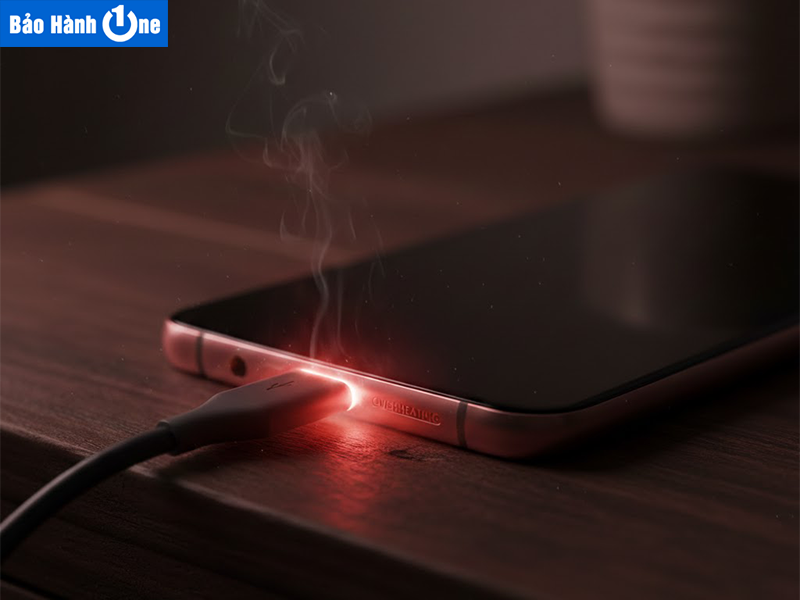 - Máy nóng bất thường hoặc có mùi khét: Khu vực chân sạc nóng lên đột ngột khi đang cắm sạc, hoặc phát ra mùi nhựa cháy do chập mạch bên trong.