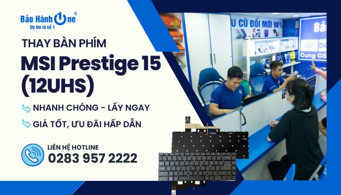 Nếu bàn phím của laptop MSI của bạn gặp vấn đề cần thay mới. Hãy đến ngay Bảo Hành One - địa chỉ uy tín hàng đầu tại TPHCM chuyên cung cấp dịch vụ thay bàn phím laptop MSI Prestige 15 (12UHS) với chất lượng hàng đầu.