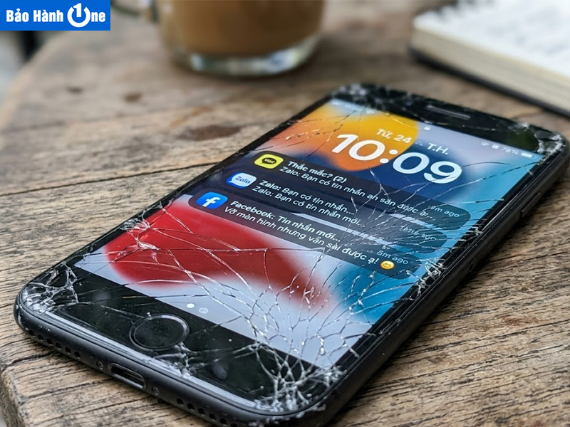 • Mặt kính nứt vỡ: Bề mặt lớp kính ngoài cùng bị rạn nhưng không ảnh hưởng đến nội dung hình ảnh hiển thị bên dưới.