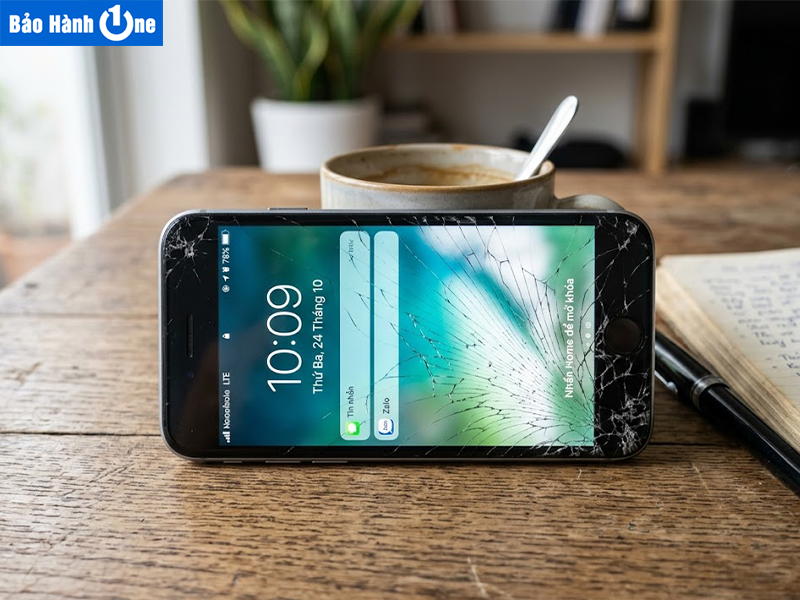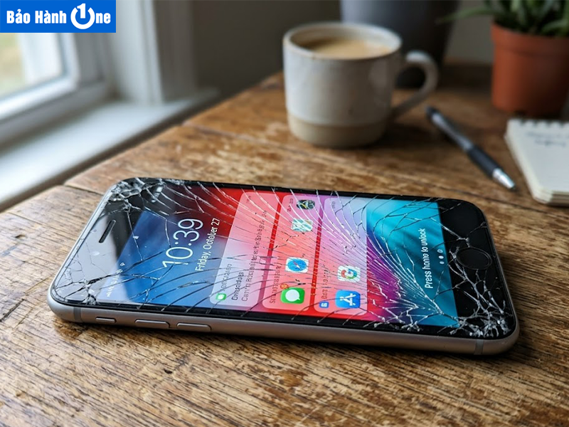 • Va đập vật lý: Điện thoại bị rơi từ độ cao đáng kể xuống nền cứng khiến cấu trúc kính cường lực bị phá vỡ hoàn toàn ngay lập tức sau tác động.