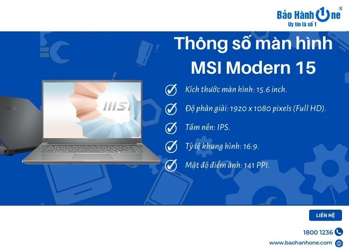 Một số thông tin kỹ thuật của màn hình MSI Modern 15