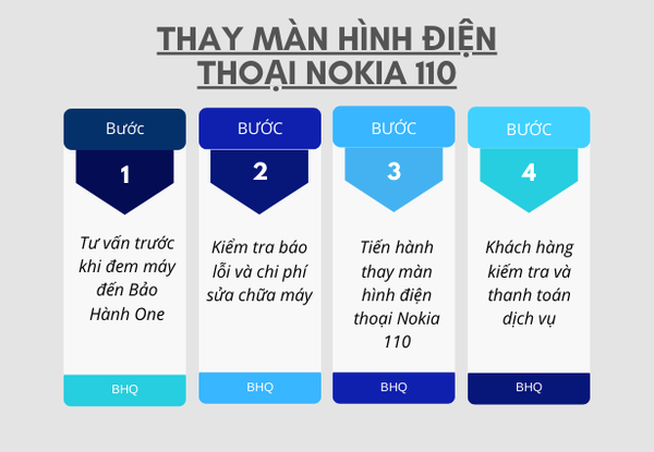 Sau khi khách hàng mang máy đến trung tâm tiếp nhận dịch vụ, bộ phận kỹ thuật sẽ tiến hành kiểm tra, xem xét tình trạng hư hỏng và báo giá dịch vụ sửa chữa thay thế cụ thể đồng thời nhân viên sẽ làm thủ tục nhận máy sửa chữa thay thế khi khách hàng đồng ý với các phương án khắc phục và báo giá của trung tâm đưa ra. Để bảo đảm quyền lợi khách hàng cần ký tên niêm phong vào toàn bộ các linh kiện trước khi nhân viên tiến hành thay màn hình Nokia 110.