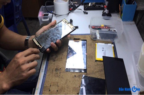 Nhân viên kỹ thuật sẽ tiến hành tháo linh kiện ra khỏi máy, vệ sinh toàn bộ máy và thay màn hình mới, cuối cùng là lắp lại máy, hoàn tất quá trình sửa chữa. Khách hàng có thể theo dõi trực tiếp các thao tác.