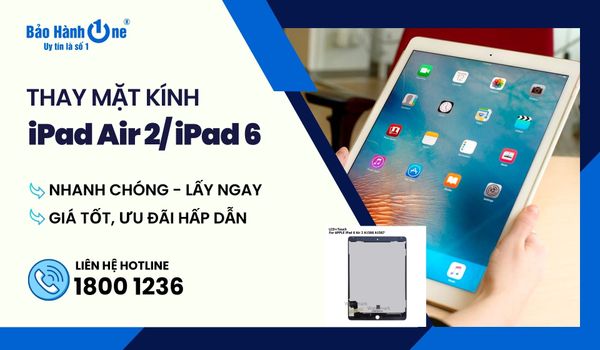 Với dịch vụ thay mặt kính iPad Air 2/ iPad 6 tại Bảo Hành One, bạn sẽ được đảm bảo chất lượng, giá cả cạnh tranh và thời gian thực hiện nhanh chóng. Hãy liên hệ ngay tại số hotline 18001236 để khôi phục sự hoàn hảo cho màn hình cảm ứng của thiết bị của bạn.