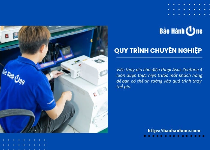 Chúng tôi hiểu rằng quy trình sửa chữa điện thoại luôn là một phần quan trọng của dịch vụ. Tại Bảo Hành One, việc thay pin cho điện thoại Asus Zenfone 4 luôn được thực hiện trước mắt khách hàng để bạn có thể tin tưởng vào quá trình thay thế pin.