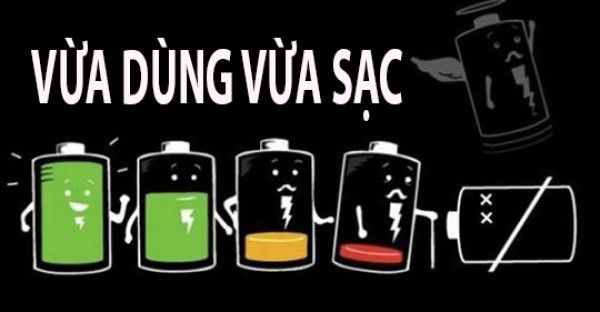 • Thói quen vừa sạc vừa sử dụng điện thoại chơi game, nghe nhạc, xem phim,…