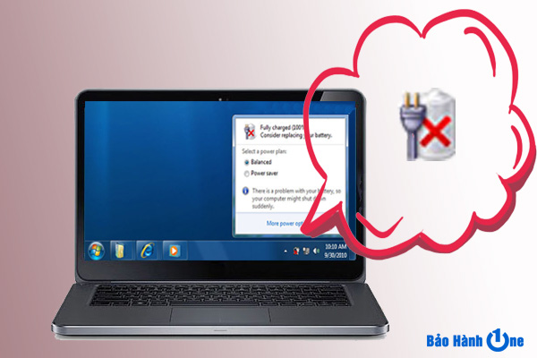 • Xuất hiện dấu “X” màu đỏ tại biểu tượng pin laptop ở góc màn hình.