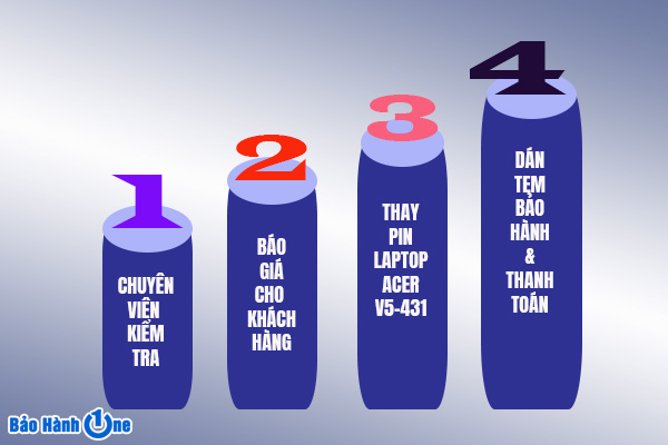 • Quy trình với 4 bước nêu trên giúp khách hàng an tâm khi thay pin laptop Acer V5-431.