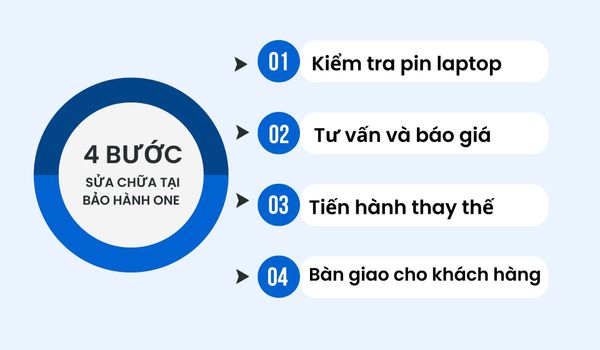 • Thời gian nhanh chóng: Bảo Hành One cam kết hoàn thành quá trình thay pin trong thời gian ngắn, chỉ từ 15-30 phút để bạn có thể sử dụng lại laptop một cách nhanh chóng.