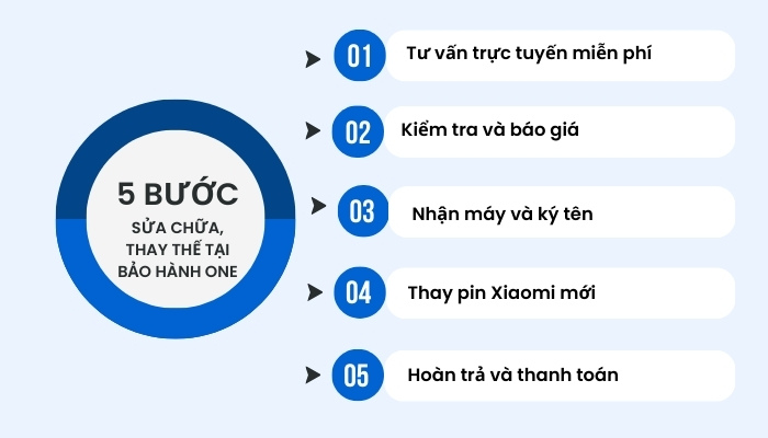 Quá trình sửa chữa pin cho điện thoại Xiaomi Bn44/ Xiaomi Redmi 5 Plus/ Redmi Note 5 tại Bảo Hành One sẽ diễn ra với 5 bước chính như sau:
