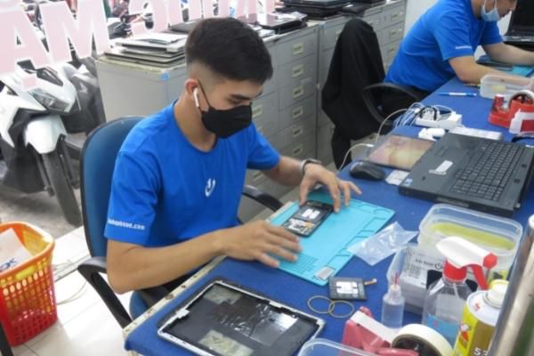 Bước 2: Sau khi khách hàng mang máy tới trung tâm thì nhân viên sẽ nhận máy chuyển vào phòng kỹ thuật tiến hành kiểm tra, xem xét tình trạng hư hỏng pin của máy và báo giá dịch vụ sửa chữa.