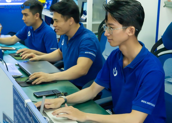 Đội ngũ điều phối viên kiểm tra hoạt động laptop trước khi bàn giao