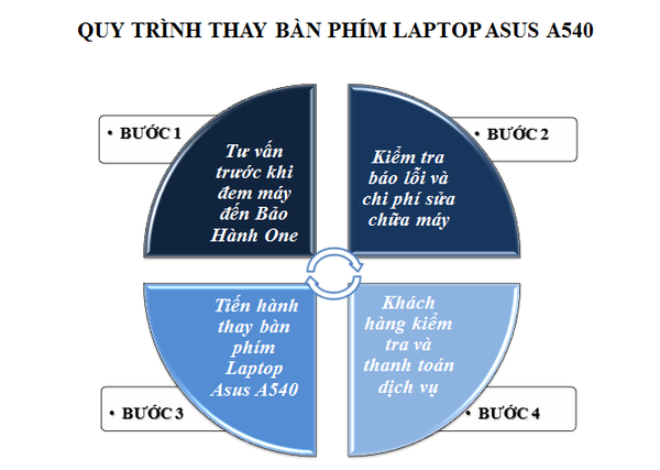 Bảo Hành One là một trung tâm sửa chữa linh kiện điện tử  uy tín - chuyên nghiệp. Để khách hàng không phải chờ đợi lâu, tất cả các khâu từ tiếp nhận, xử lý đến giao trả đều được thực hiện theo một trình tự. Quy trình thay bàn phím laptop Asus A540 tại Bảo Hành One được thực hiện như sau: