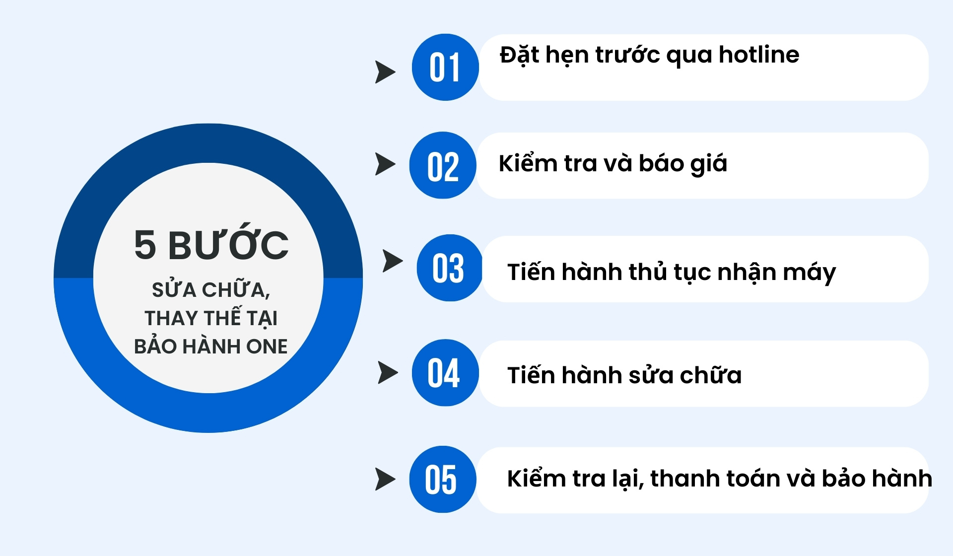 • Bước 5: Kỹ thuật viên kiểm tra toàn bộ máy và bàn giao cho khách hàng. Viết phiếu bảo hành và thanh toán dịch vụ thay, sửa chữa.