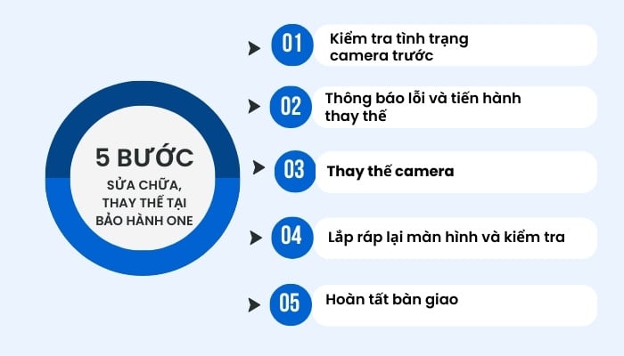 Kỹ thuật viên sẽ thay thế camera trước bằng linh kiện chính hãng và đảm bảo rằng quy trình thay thế được tiến hành đúng chuẩn.