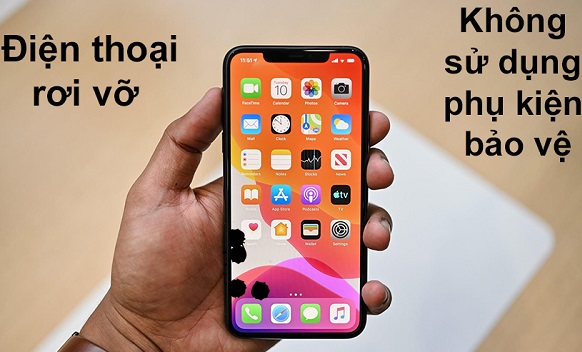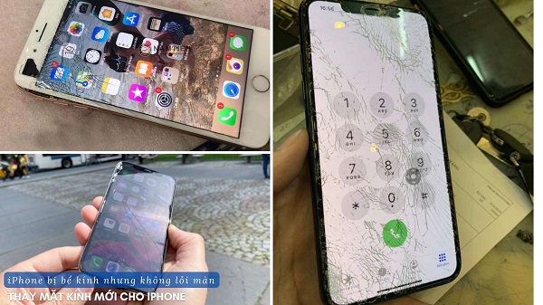 – Mặt kính iPhone không còn nguyên vẹn xuất hiện vết vỡ nứt.