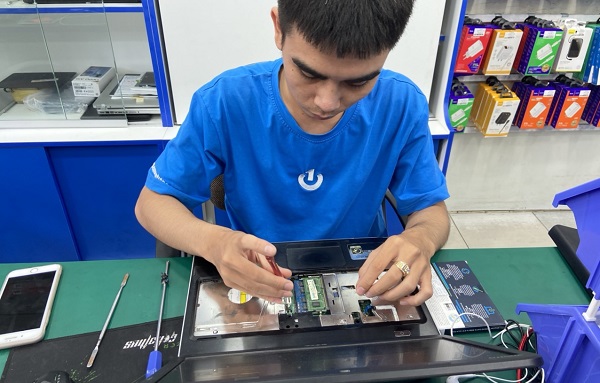 Kỹ thuật viên tiến hành thay màn hình khi máy không hoạt động