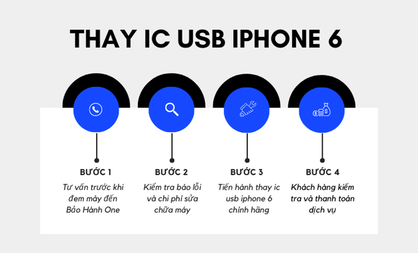 Tại Bảo Hành One, chúng tôi thực hiện quy trình sửa chữa IC USB iPhone 6 một cách chuyên nghiệp. Dưới đây là quy trình sửa chữa IC USB iPhone 6 tại Bảo Hành One: