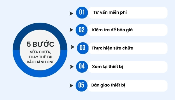 Sau khi kiểm tra lại thiết bị đã sửa chữa, chúng tôi sẽ bàn giao thiết bị đã được sửa chữa lại cho khách hàng. Chúng tôi sẽ dán tem bảo hành cho thiết bị đã sửa chữa giúp khách hàng yên tâm trong quá trình sử dụng. Bảo Hành One sẽ sẵn sàng hỗ trợ khách hàng trong suốt thời gian bảo hành sẵn sàng giải quyết mọi vấn đề phát sinh.