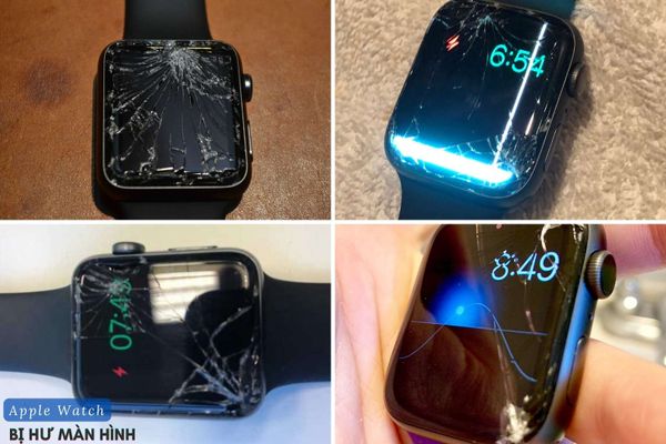 • Va chạm mạnh hoặc rơi rớt: Màn hình Apple Watch dễ bị hỏng khi thiết bị va chạm mạnh hoặc rơi xuống mặt đất. Va chạm này có thể dẫn đến nứt, vỡ hoặc hỏng màn hình.
