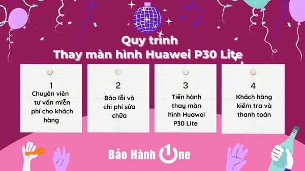 • Thời gian thay màn hình Huawei P30 Lite chỉ mất 30 phút (đặt hẹn trước)