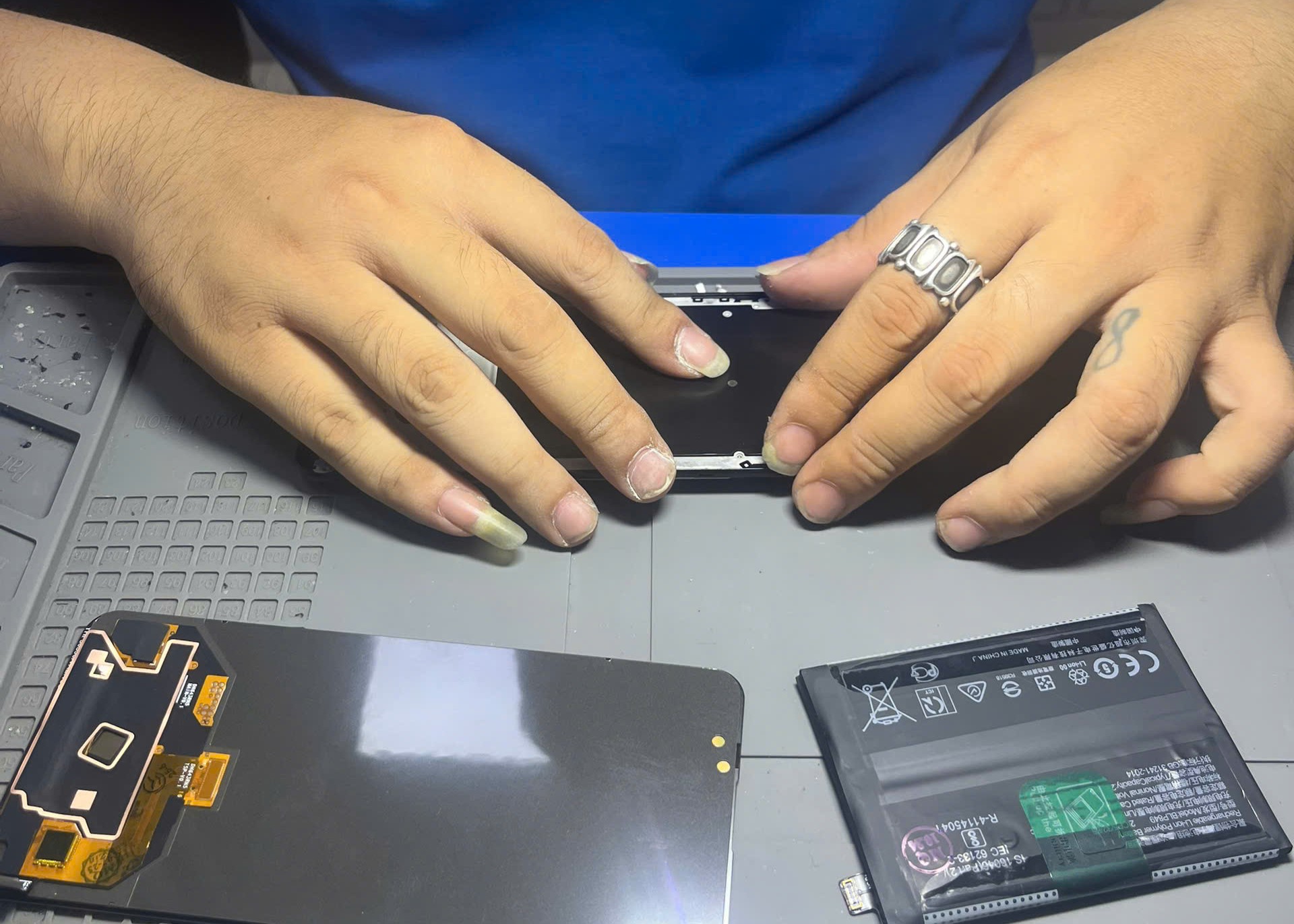 • Quy trình thay màn hình minh bạch – công khai, khách hàng được quan sát trực tiếp và ký tên lên linh kiện.