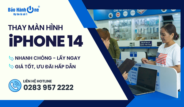 Hãy đến với Bảo Hành One - trung tâm uy tín, chất lượng bậc nhất TP.HCM, để được thay màn hình iPhone 14 nhanh chóng vô cùng tiện lợi mà giá cả lại phải chăng nữa nhé! Mọi thông tin chi tiết về dịch vụ thay màn hình iPhone, xin vui lòng liên hệ trung tâm qua HOTLINE:18001236 để được tư vấn trực tiếp.