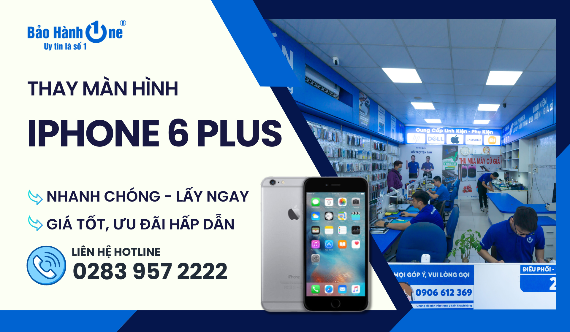 Màn hình là bộ phận quan trọng trên mỗi điện thoại, nếu chẳng may màn hình iPhone 6 Plus của bạn gặp vấn đề cần tìm nơi sửa chữa uy tín. Hãy tham khảo dịch vụ thay màn hình iPhone 6 Plus của Bảo Hành One - với linh kiện chính hãng, thời gian chỉ 30 phút (hẹn trước) lấy liền.
