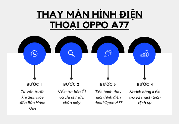 Dưới đây là 4 bước thay màn hình Oppo A77 được công khai, nhằm minh bạch trong quá trình hoạt động và tiết kiệm thời gian cho khách hàng.