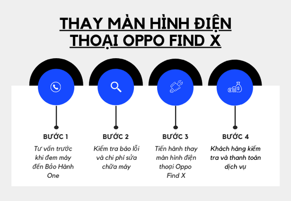 Dưới đây là 4 bước thay màn hình Oppo Find X được công khai, nhằm minh bạch trong quá trình hoạt động và tiết kiệm thời gian cho khách hàng.