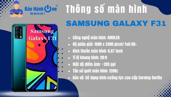 Nằm trong phân khúc tầm trung, nhưng chiếc điện thoại Samsung Galaxy F31 lại sở hữu thông số màn hình nổi bật. Cùng điểm qua những thông số này trước khi thay màn hình Samsung Galaxy F31 nhé!