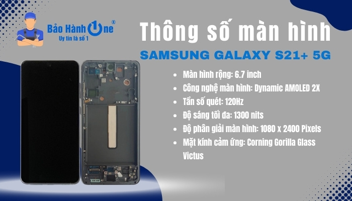 Hãy cùng Bảo Hành One điểm qua các thông số vô cùng ấn tượng của màn hình Samsung Galaxy S21+ 5G mang lại cho khách hàng nhé, cụ thể: