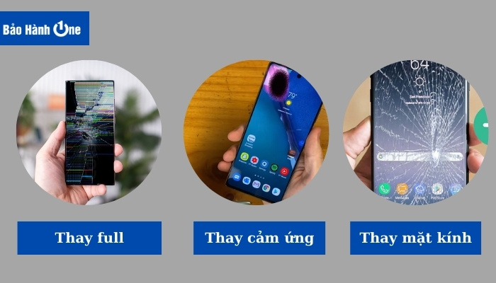 • Điện thoại cần thay toàn bộ màn hình: Mặt kính, cảm ứng và màn hình LCD gắn liền với nhau, bạn sẽ phải thay toàn bộ màn hình khi một trong ba bộ phận trên bị hỏng. Ngược lại, máy của bạn có thể tách rời cảm ứng và LCD thì bạn chỉ cần thay duy nhất bộ phận đã bị hỏng.