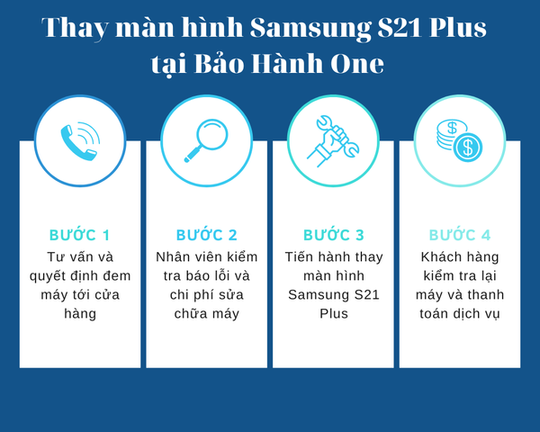Quy trình sửa chữa màn hình Samsung S21 Plus tại Bảo Hành One gồm bước sau:
