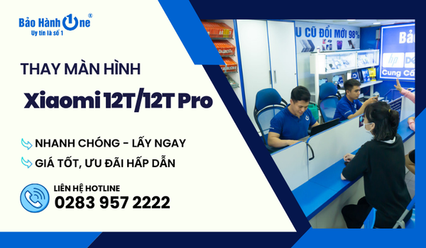 Đừng ngần ngại liên hệ với Bảo Hành One khi bạn cần thay màn hình cho Xiaomi 12T hoặc Xiaomi 12T Pro. Chúng tôi luôn sẵn lòng hỗ trợ bạn để chiếc điện thoại của bạn trở lại hoạt động như mới. Hãy gọi ngay hotline miễn phí 1800 1236 hoặc đặt hẹn trực tuyến để được tư vấn và hỗ trợ tốt nhất.