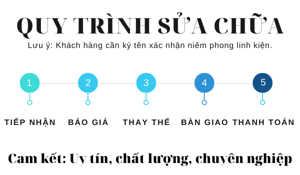 • Đảm bảo linh kiện chính hãng còn nguyên tem (chưa qua sử dụng) kèm giấy chứng nhận nguồn gốc. Khách hàng ký xác nhận niêm phong linh kiện trước giao máy cho trung tâm sửa chữa