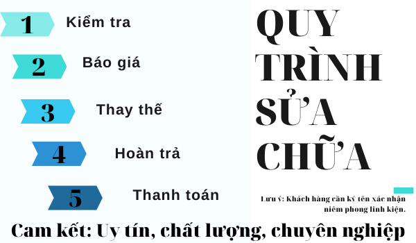 • Đảm bảo linh kiện chính hãng còn nguyên tem (chưa qua sử dụng) kèm giấy chứng nhận nguồn gốc. Khách hàng ký xác nhận niêm phong linh kiện trước giao máy cho trung tâm sửa chữa