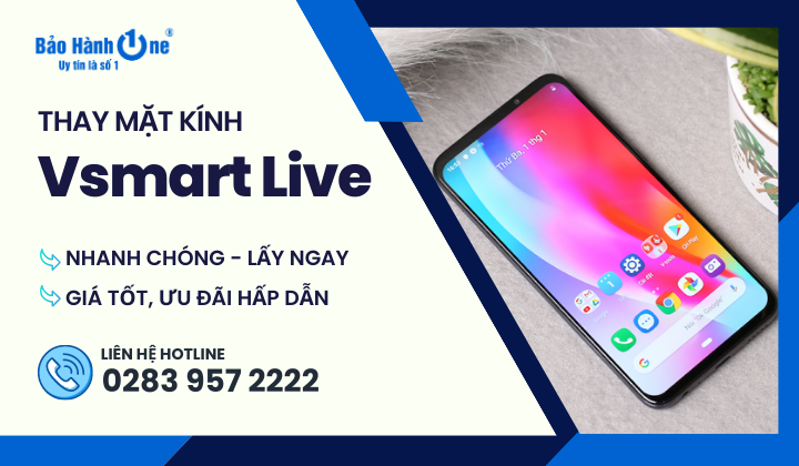 Nếu bạn có nhu cầu thay mặt kính màn hình điện thoại thì hãy đến ngay trung tâm Bảo Hành One để được kiểm tra tình trạng máy và tư vấn thay mới mặt kính cho máy nhé. Ngoài Vsmart Live, một số sản phẩm khác như: Vsmart Joy, Vsmart Star, Vsmart Active,... cũng là một trong những thiết bị được khách hàng tin tưởng gửi gắm trung tâm Bảo Hành One thay mặt kính, thay màn hình cảm ứng.