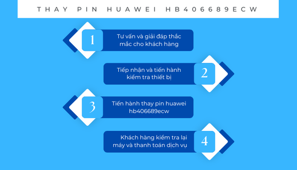 Sau khi bạn đồng ý với giá cả, nhân viên của Bảo Hành One sẽ tiến hành thay pin Huawei HB406689ECW mới cho bạn. Quá trình thay pin sẽ được thực hiện công khai, minh bạch, cam kết sử dụng pin chính hãng và không xảy ra tình trạng tráo đổi linh kiện.
