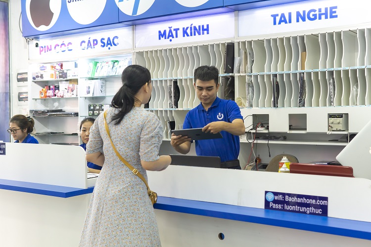 Cuối cùng, nhân viên kỹ thuật kiểm tra toàn bộ máy và bàn giao cho bộ phận thu ngân để hoàn trả cho khách hàng. Nhân viên thu ngân viết phiếu bảo hành, dán tem mác vào máy. Khách hàng kiểm tra toàn bộ máy và tiến hành thanh toán dịch vụ cho trung tâm.
