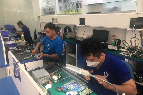 Sau khi khách hàng mang máy tới trung tâm thì nhân viên sẽ nhận máy chuyển vào phòng kỹ thuật tiến hành kiểm tra, xem xét tình trạng hư hỏng pin của máy và báo giá dịch vụ sửa chữa.