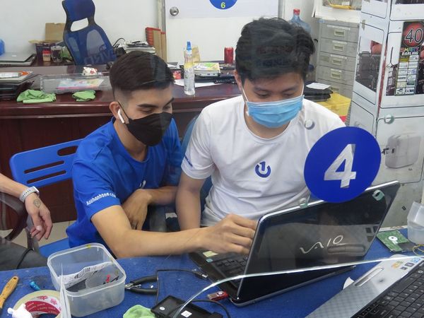 • Bước 1: Nhân viên nhận laptop Asus của khách hàng để kiểm tra tình trạng pin