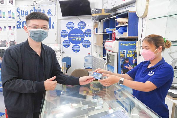 Bước 4: Dán Tem bảo hành cho pin laptop và thanh toán